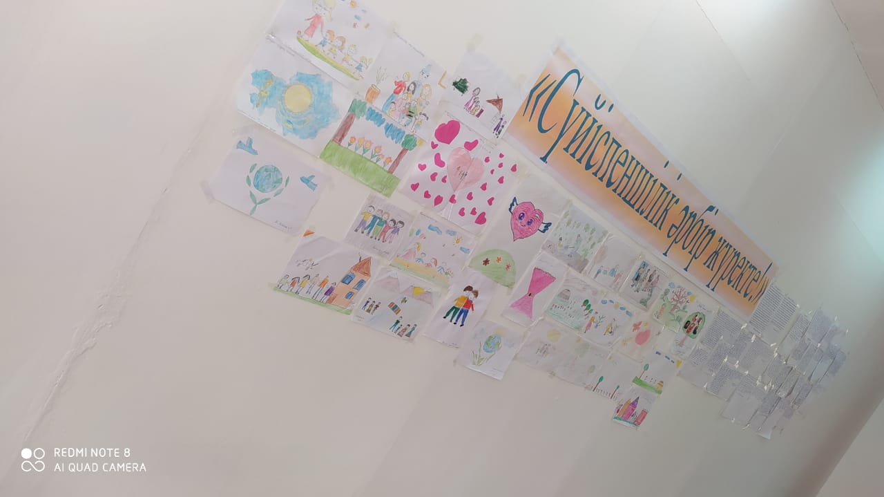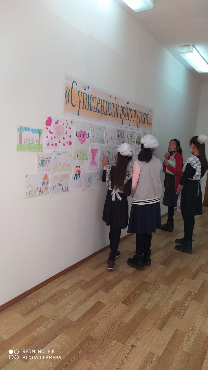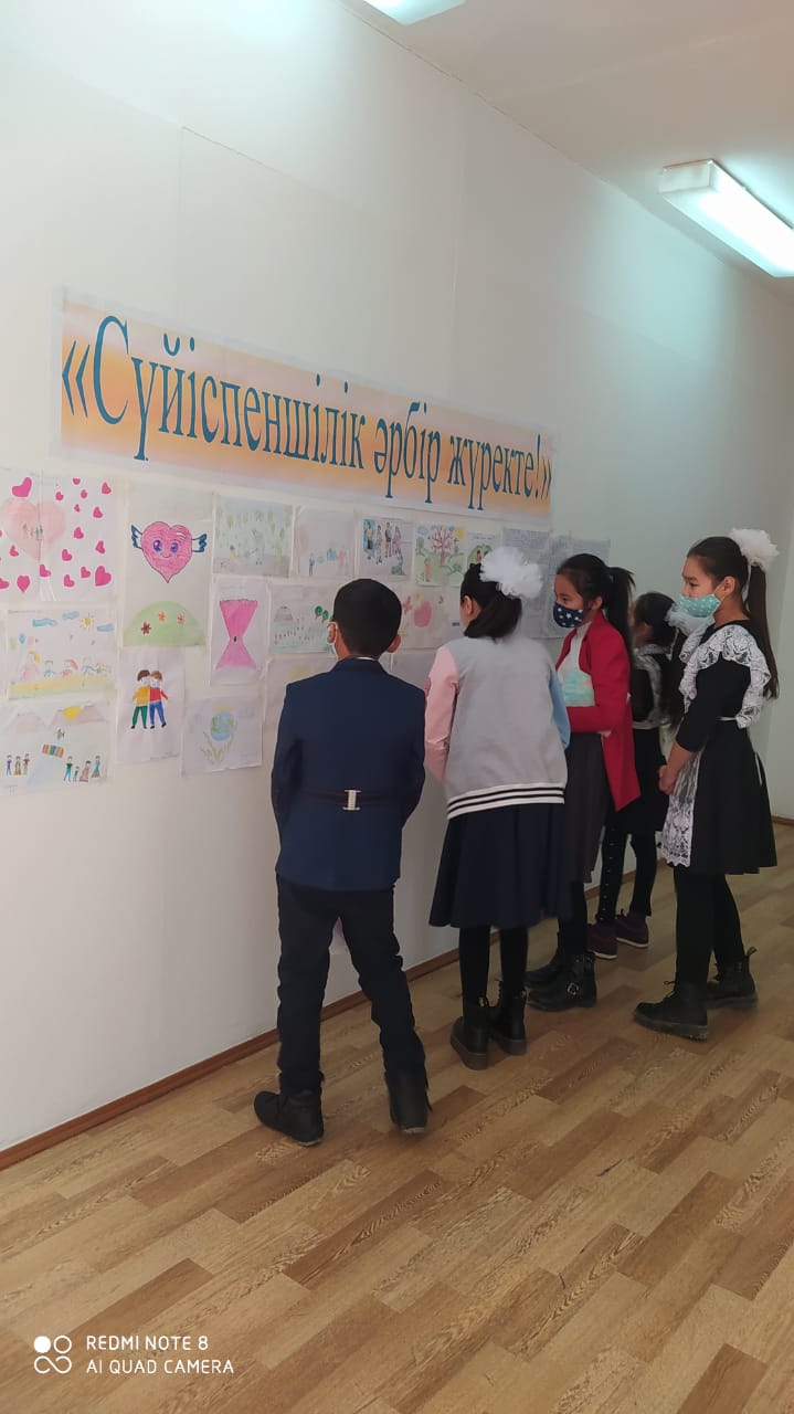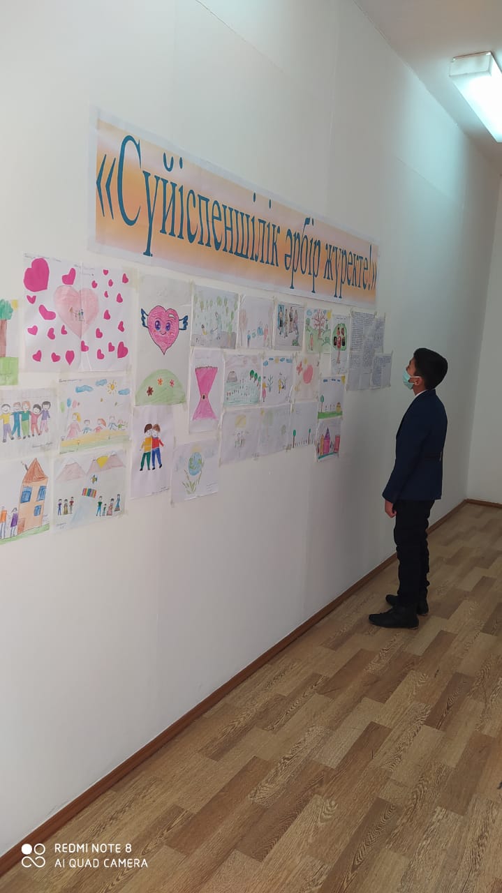 5-7 сыныптар арасында Қалмағанбетова Сәуленің ұйымдастыруымен «Үлгілі болу – қызмет етудіңең тиімді жолы» атты тренинг өткізілді. Тренинг барысында жалпыадамзаттық құндылықтар туралы өз ойларын ортаға салды.Сыйқырлы қобдиша ойыны ойнатылды. Әр бала қобдишаның ішіндігі жазылған адамгершілік қасиеттер жазылған сыйлықты достарына сыйлады. Осы сыйлықты алған оқушыны лайықты деп таныса, қошемет көрсетілді. Жұректерге жазылған әр түрлі жақсы қасиеттерді қасындағы оқушыларға ұсынды.