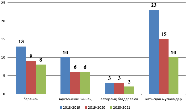- Әдістемелік өнімді әзірлеу,тәжірибемен бөлісу (басылымдар);