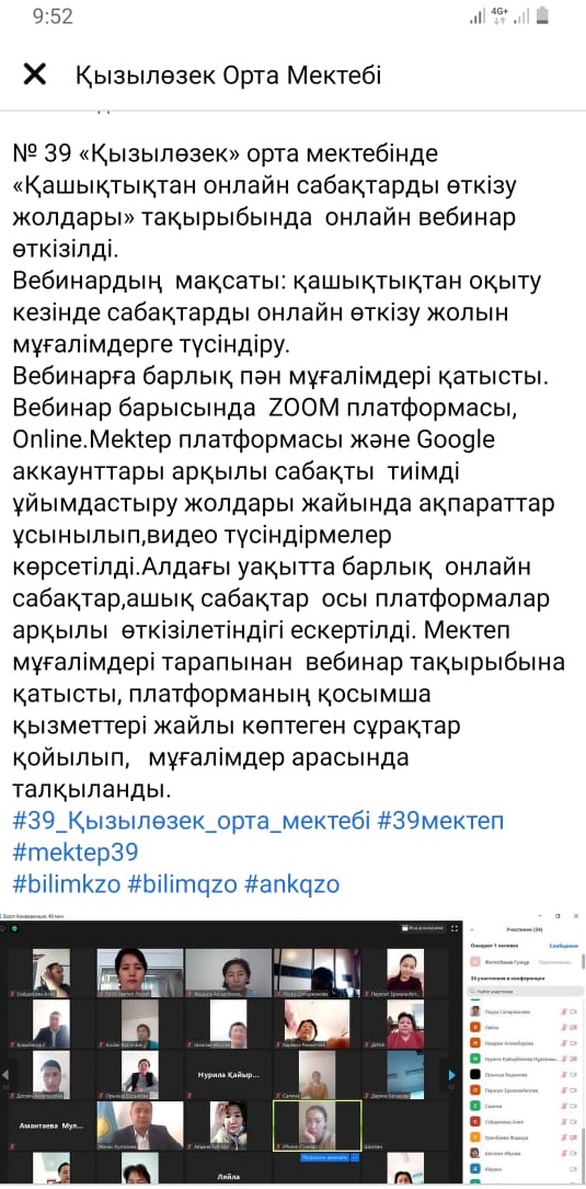 Физика пәні мұғалімі Қ.Ермекбаева 9-сыныпқа арналған «Электростатика негіздері» тақырыбына жасаған бейнесабағын, бастауыш сынып мұғалімі Т.Маймақова «И,й әріптерінің жазылуы» тақырыбын, үйден оқытудан Ә.Ұлтанбекова «Мамандықтар әлемі» тақырыбындағы, орыс тілімен әдебиеті пәні мұғалімі Ж.Сапаржанова 4-сыныпқа «Мы строим города и села» тақырыбындағы, өзін-өзі тану пәні мұғалімі Г.Бурамбаева «Адал және ақкөңіл болу» тақырыбындағы бейнесабақтарын ұсынды,олардың жасалу жолдарымен таныстырды.