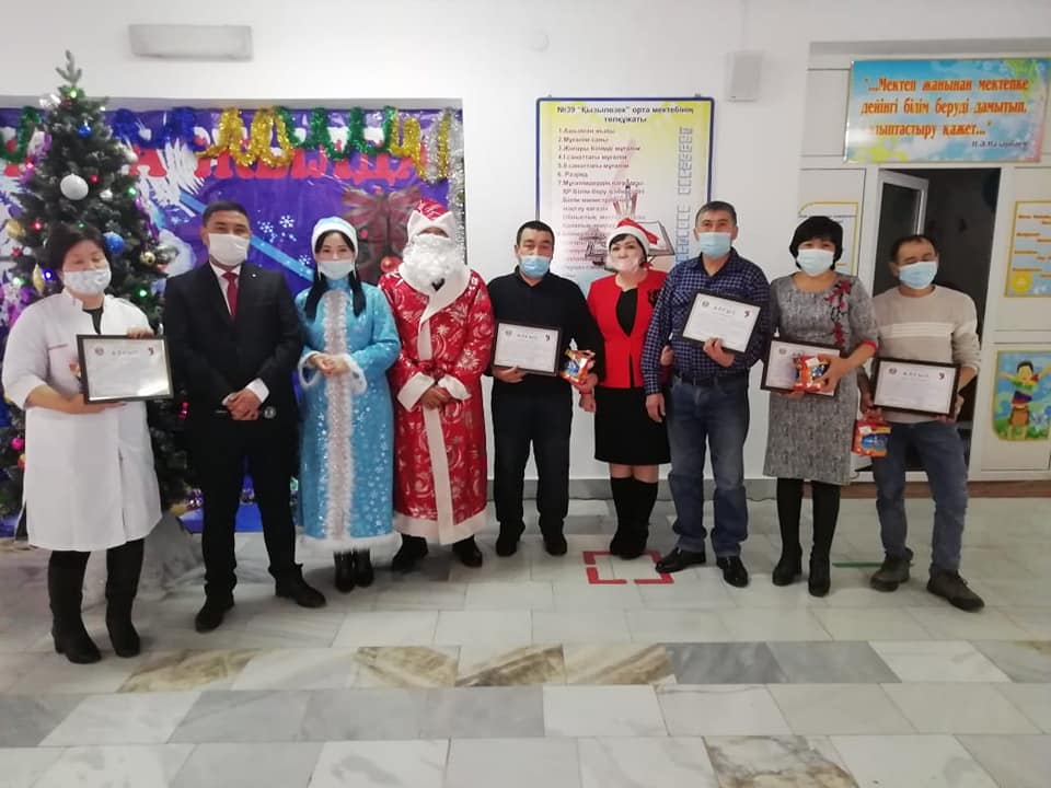 және алда келе жатқан жаңа жыл мерекесімен құттықтап, мерекелік сыйларын табыстады. Әрдайым ардагер ұстаздарын назардан тыс қалдырмайтын мектеп ұжымына туған күн иелері, аяулы ардагерлеріміз ерекше ризашылығын білдіріп, ақ баталарын беріп шығарып салды.